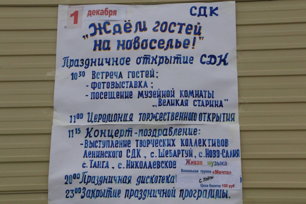 Открытие дома культуры в посёлке Ленинский Улётовского района (1 декабря 2017 г.)