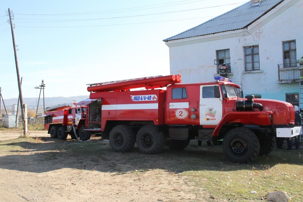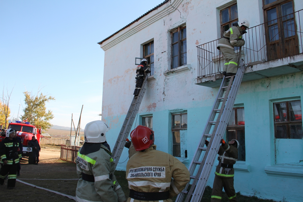 Пожарно-тактические учения по тушению условного пожара в здании средней школы с. Александровка Читинского района