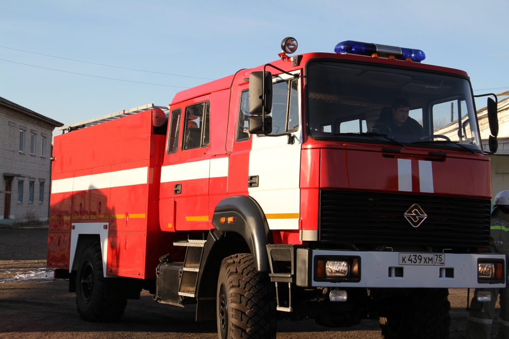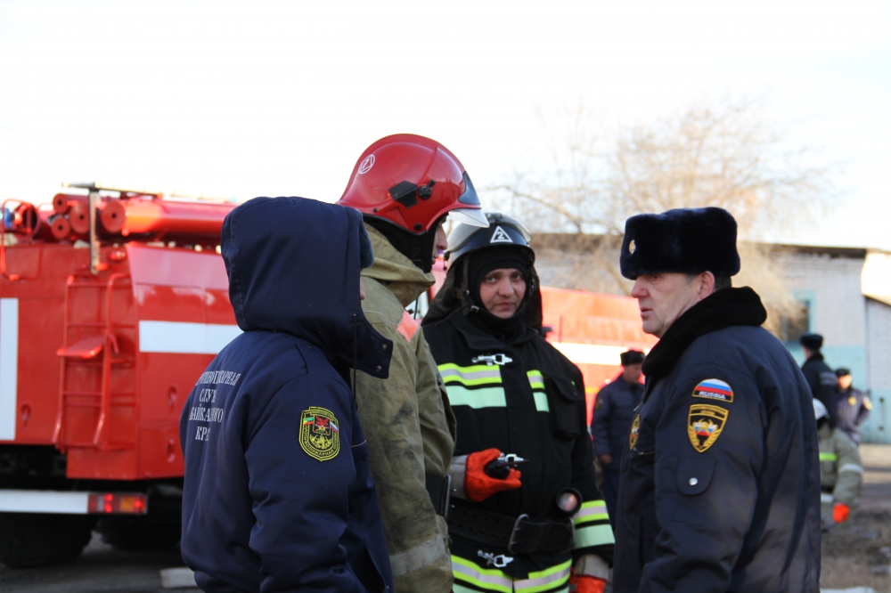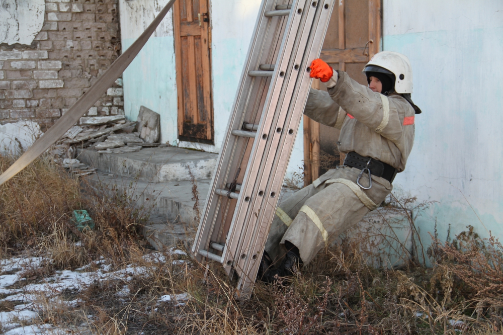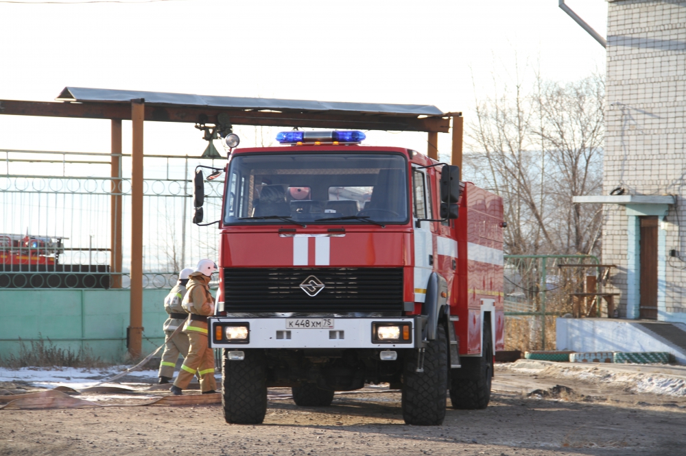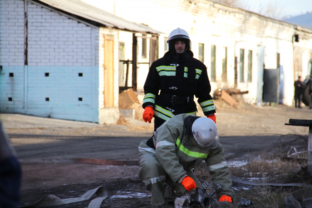 Пожарно-тактическое учение, проводимое Государственным учреждением "Противопожарная служба Забайкальского края" на здание общежития Макавеевской птицефабрики п.Макавеево
