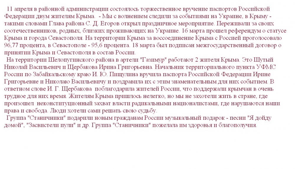 Торжественное вручение паспортов Российской Федерации жителям Крыма